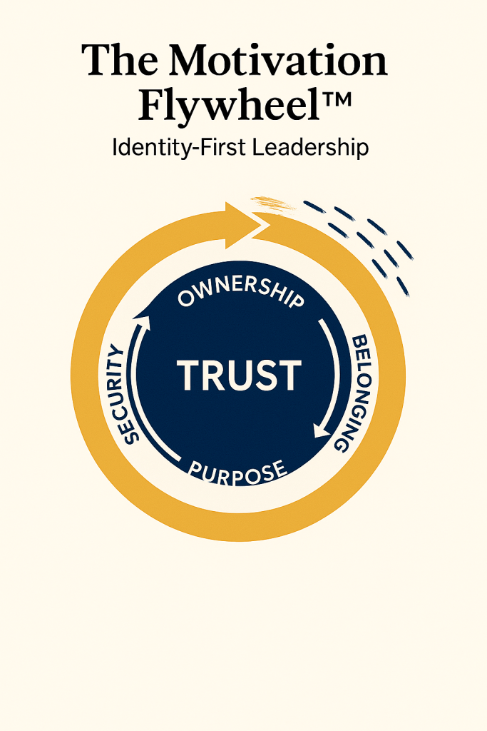 Most teams aren’t underperforming—they’re exhausted from pressure-based leadership. This is the third in a series of mini-trainings on Identity-First Leadership™. This article introduces the Motivation Flywheel™ and shows how identity-first leaders build sustainable drive through security, ownership, belonging, and purpose.